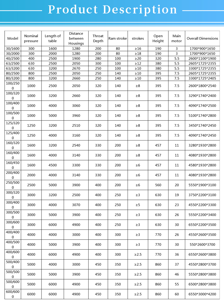 * Hele EU strømlinet design, varmebehandlingsramme, høj stivhed arbejdsbord, valgfri mekanisk kompensationsanordning til præcis bøjning.